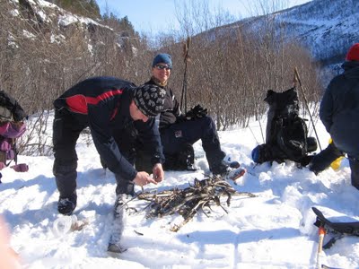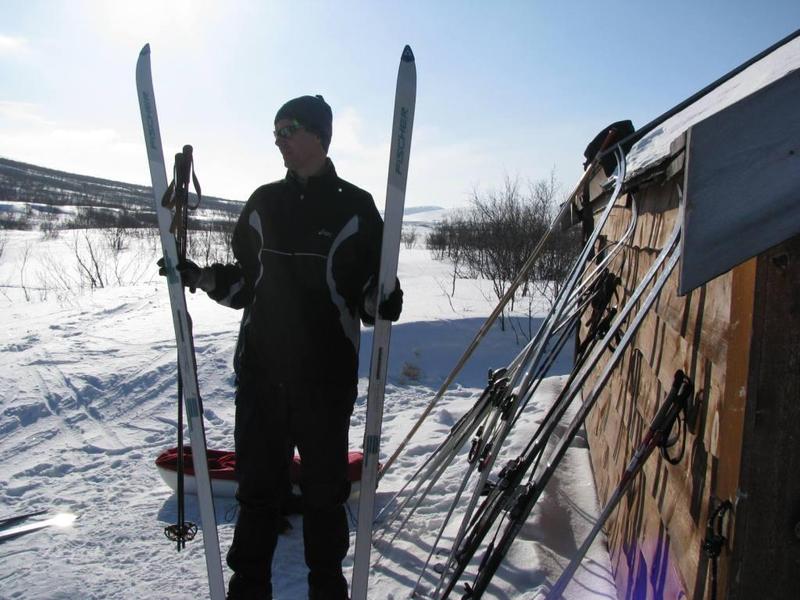 Godt inn i skumringstimen kom vi fram til hytta ved Nausti. Der ble det organisert vedhogst, oppfyring og obligatorisk uttøying blant gjengens medlemmer. Dessverre deltok ikke alle i uttøyinga – og det straffet seg kraftig noe senere ut i turen…