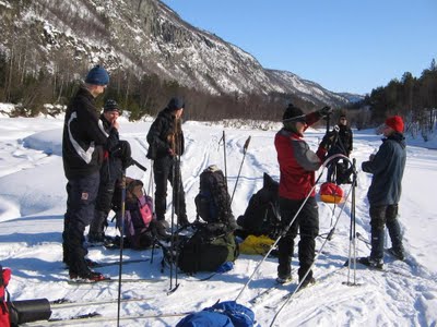På lørdags morgen kom havregrøten raskt på kok, og en utsendt medarbeider kunne melde om 19 minusgrader, solskinn og vindstille! Frokost og rydding av hytte gikk programmessig, og etter at vedkassen var fylt opp var det klart for avgang videre oppover mot Imo.