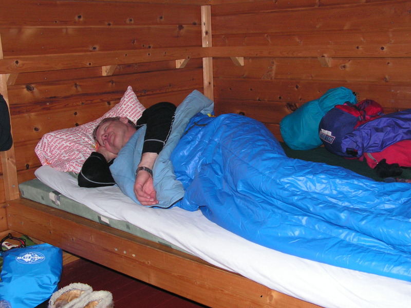 Lørdag morgen begynte med at Asbjørn måtte svare for hva han hadde drømt på hvite laken og putevar. Å gå med pulk gir rom for litt ekstra luksus.