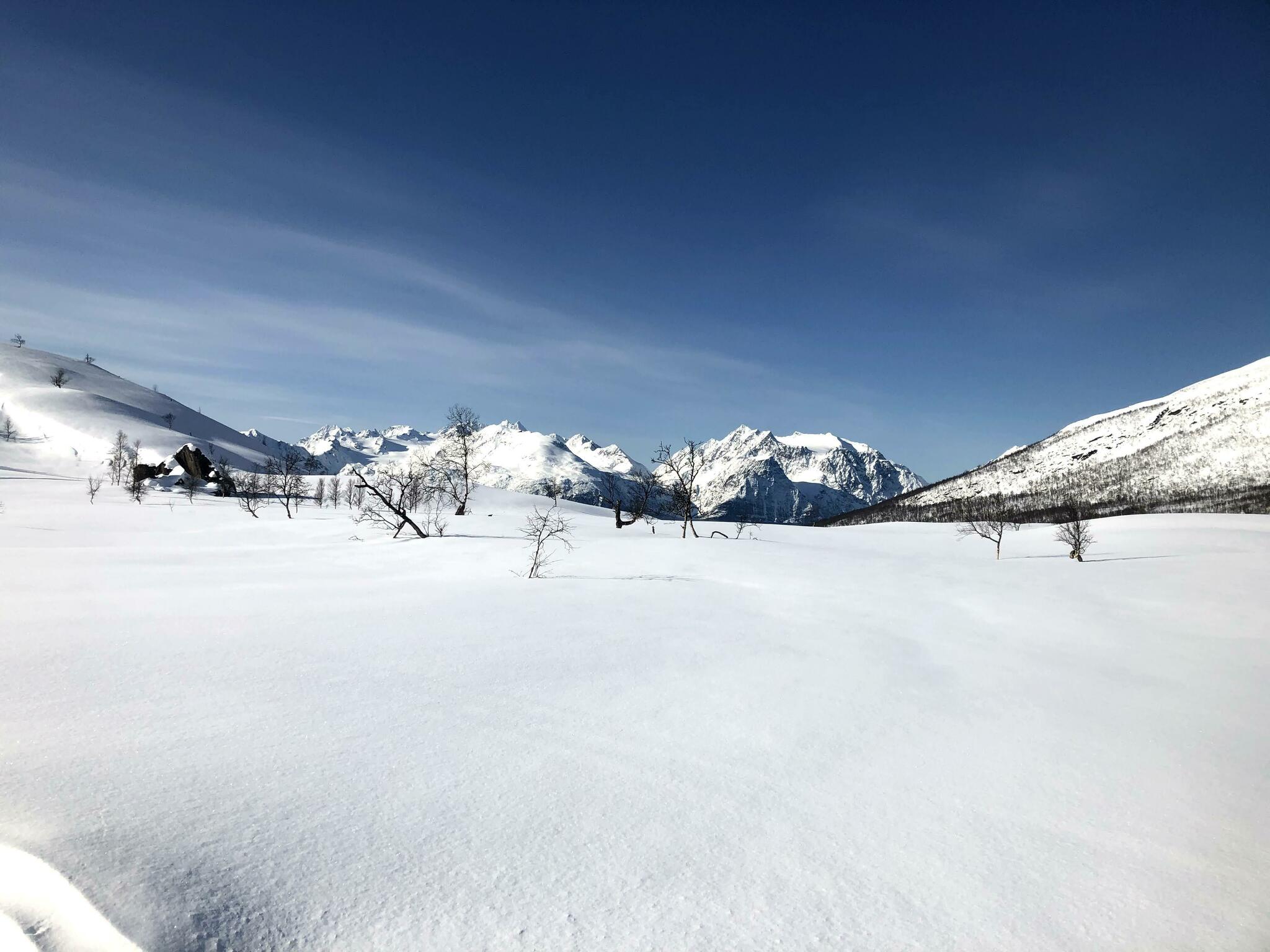 Fredagens tur gikk til Kåfjord og parkeringsplassen i Normannvik. Etter snøfall på torsdag og oppklarning til nydelig vær på fredag, var det et fantastisk føre med puddersnø oppover dalen. Sola dukket fram bak fjellet da vi kom opp i skogbandet. Da kunne vi skue utover praktfulle Lyngsaplene tvers over fjorden.