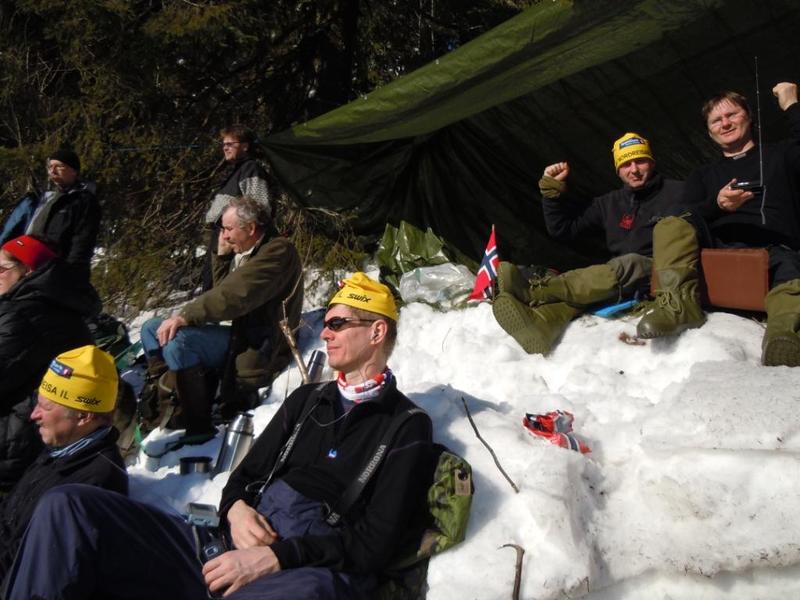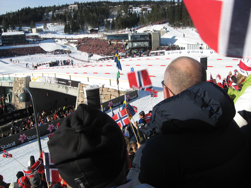Torsdag sto vi opp tidlig og etter en god frokost kjørte Carl oss til T-banestasjonen. PåMajorstua ble vi oppfordret til å ta bussen, siden togene allerede var fulle. Bussen tok oss nesten opp til Midtstua stasjon. Derfra var det gåing opp via Midtstubakken og opp til Holmenkollen. Etter litt videre gåing kom vi oss til Kappelskogen og fant oss en plass i bakkesida ovenfor løypa. Stemninga var god både før og under løpet. Alle løpere som kom ble heia på helt fra oppvarminga til siste lag i mål. Etter stafetten tok vi det det med ro og spiste lunch før vi bevegde oss bort ti hopparenaen.Car og Øystein kom opp og møtte oss i hopparenaen. Takket være Tromslua fant de oss med en gang. Tåka lå fortsatt ganske tett, så det eneste vi så var litt på storskjermen. Heldigvis letta tåka etter ca 30 hoppere, resten av hopprennet så vi fint. De minste gruppa sneik seg ned til en bedre plass, mens vi andre sto litt lenger bak. Etter en god første omgang for nordmennene øynet vi medaljer, men de sviktet i andre omgang. Etter litt køgåing ut av arenaen gikk vi til T-banen.